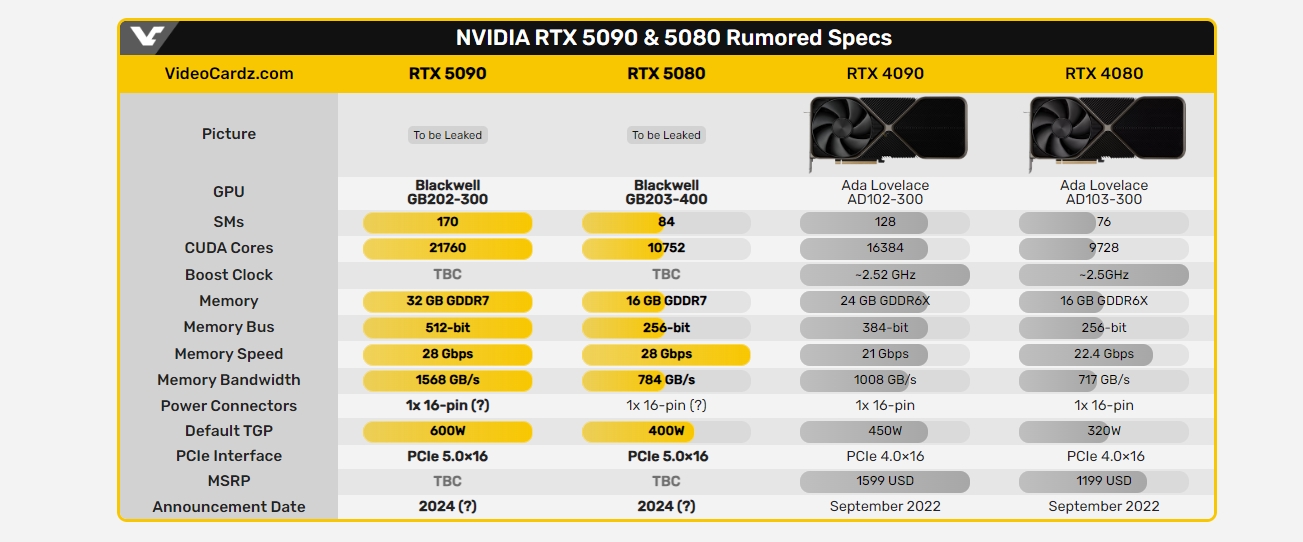 А он вполне может быть ещё выше, так как RTX 5080 получит лишь 256-битную шину. Ещё в её активе будет 16 ГБ памяти GDDR7, а TDP составит 400 Вт.